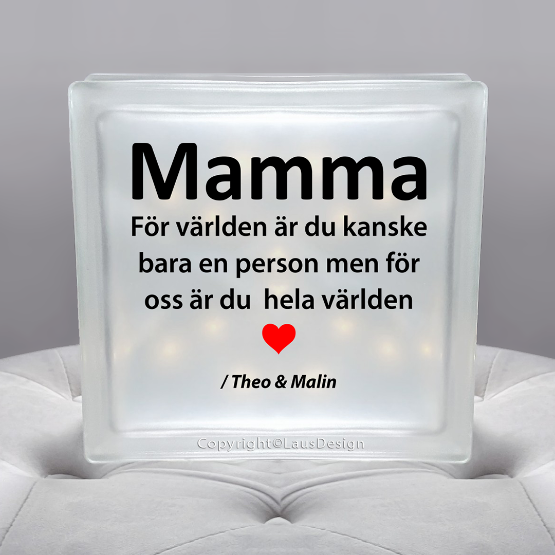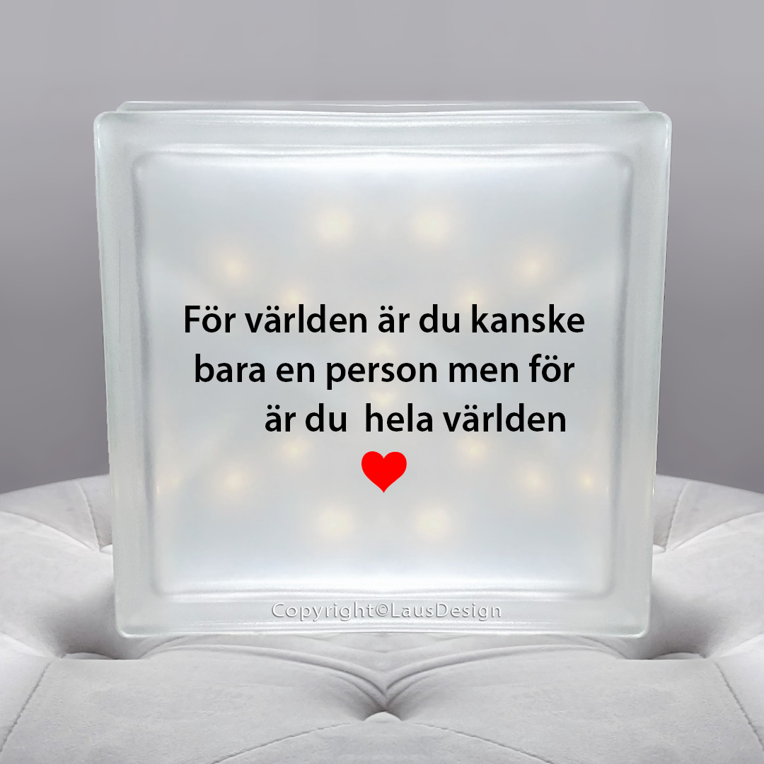 Personliga glasblock med din valfria text. En vacker och unik inredningsdetalj.