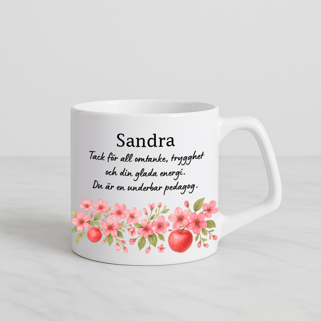 Denna stilrena keramiska mugg med texten "Underbar pedagog" är en perfekt gåva för att tacka en speciell lärare eller pedagog. Anpassa den med pedagogens namn för att skapa en unik och minnesvärd present.