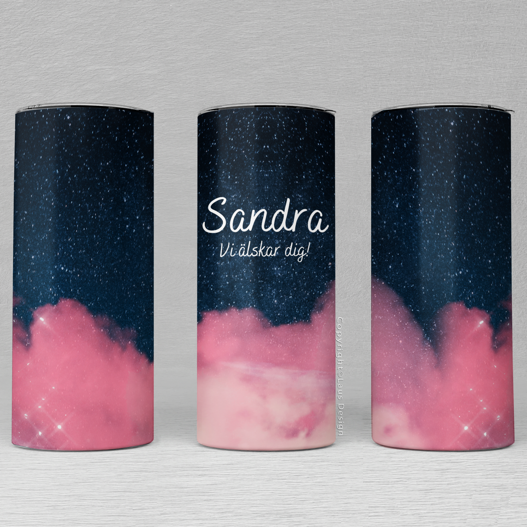 Personlig tumbler mugg med ditt val av print runt hela termosen (möts på baksidan så kan bli ett sträck).