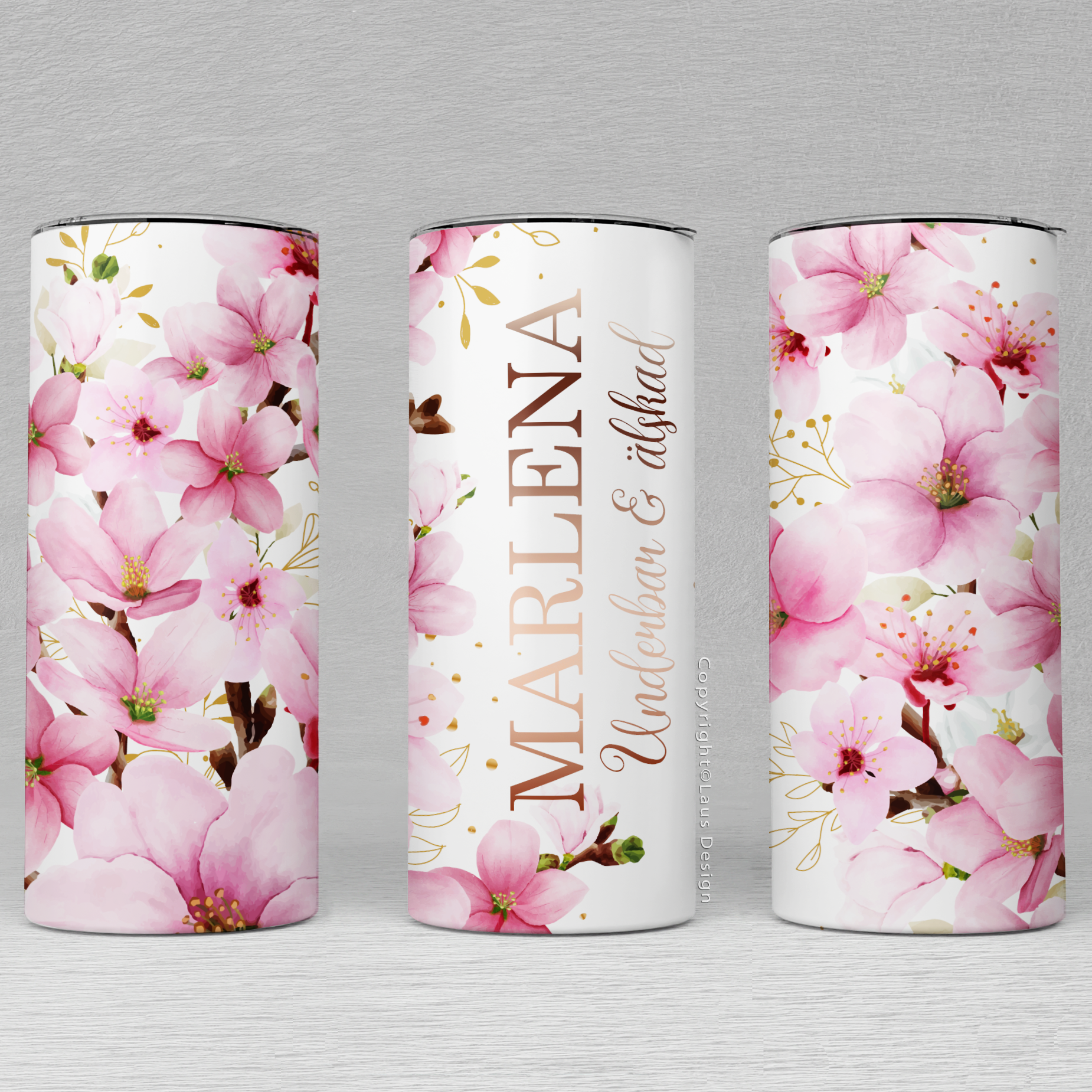 En vacker och personlig termosmugg i rosa med blomdesign – perfekt som present till mamma, pedagog, kollega eller vän!